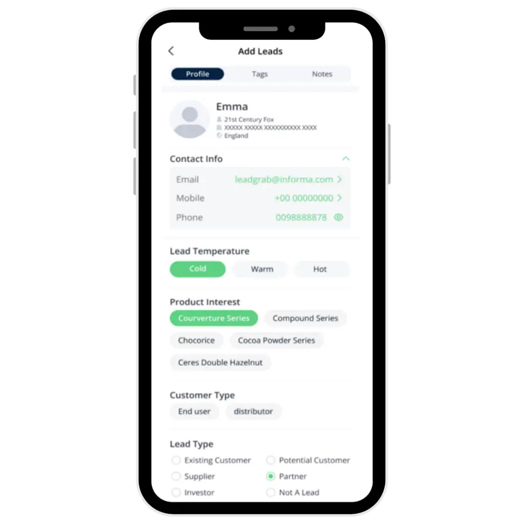 Turn quick scans into qualified sales opportunities with real-time lead tagging. With LeadGrab, you can instantly label every lead by temperature, type, and follow-up actions — right from the show floor.